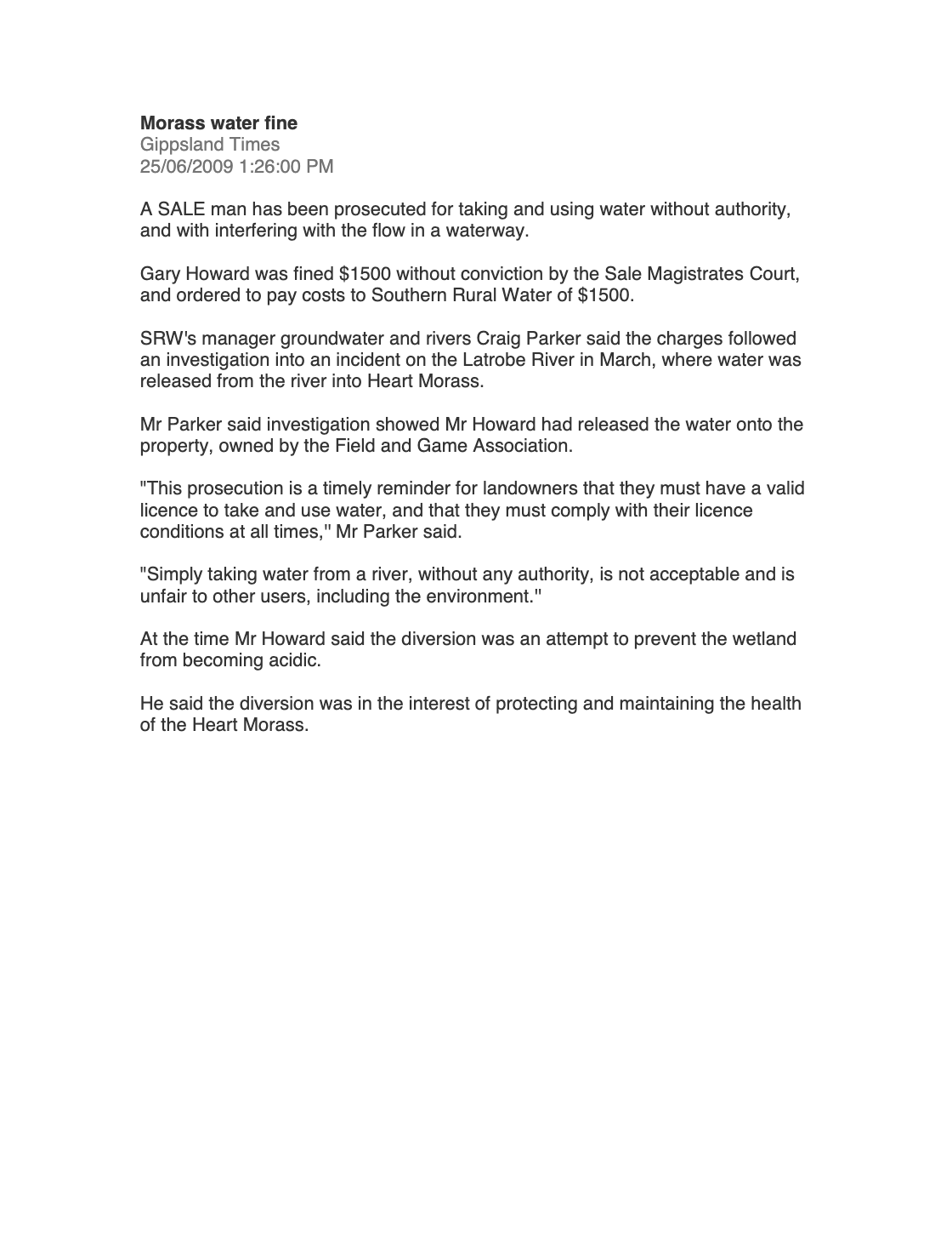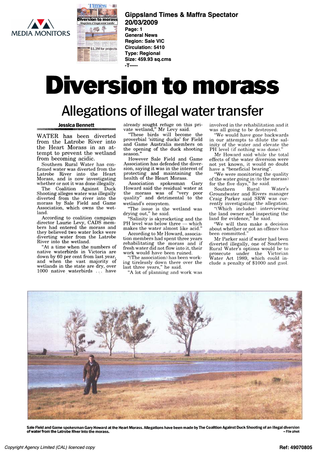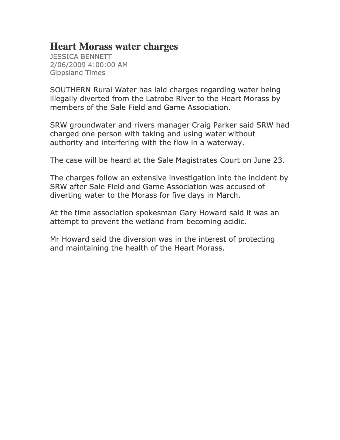 2 June 2009, Gippsland Times – Heart Morass water charges